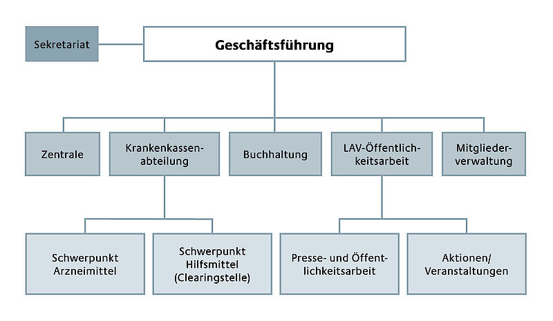 Die LAV-Geschäftsstelle unterstützt die Aktivitäten des ehrenamtlichen LAV-Vorstandes. Sie hat ihren Sitz in Hannover und besteht aus einem Team von etwa 20 Mitarbeitern.